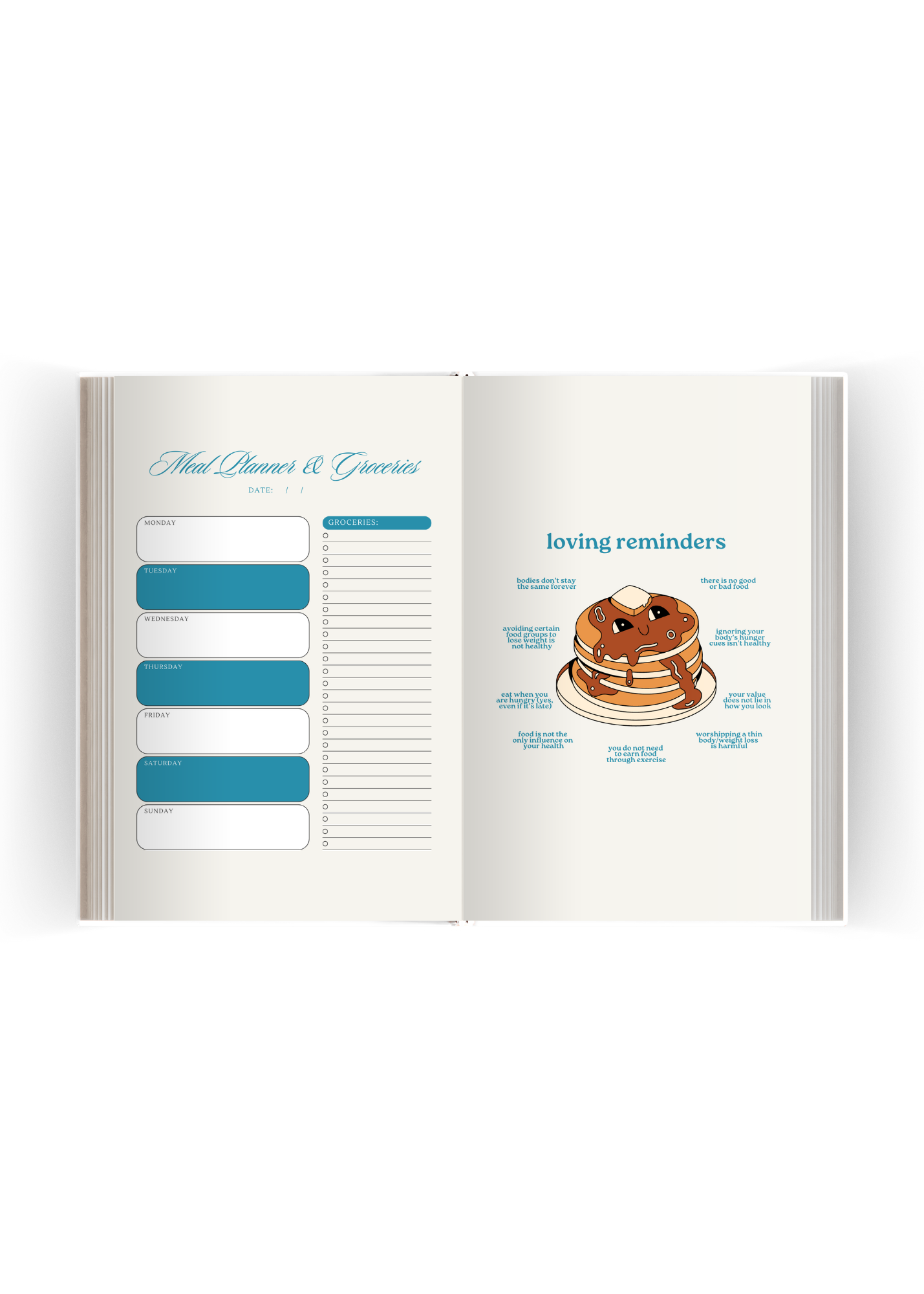 This journal is your personal space to explore your feelings, set positive intentions, and celebrate your progress. Filled with guidance and motivational affirmations, it’s designed to help you build a healthier relationship with yourself, food, and your journey. You’re one tough cookie, and this journal is here to cheer you on.