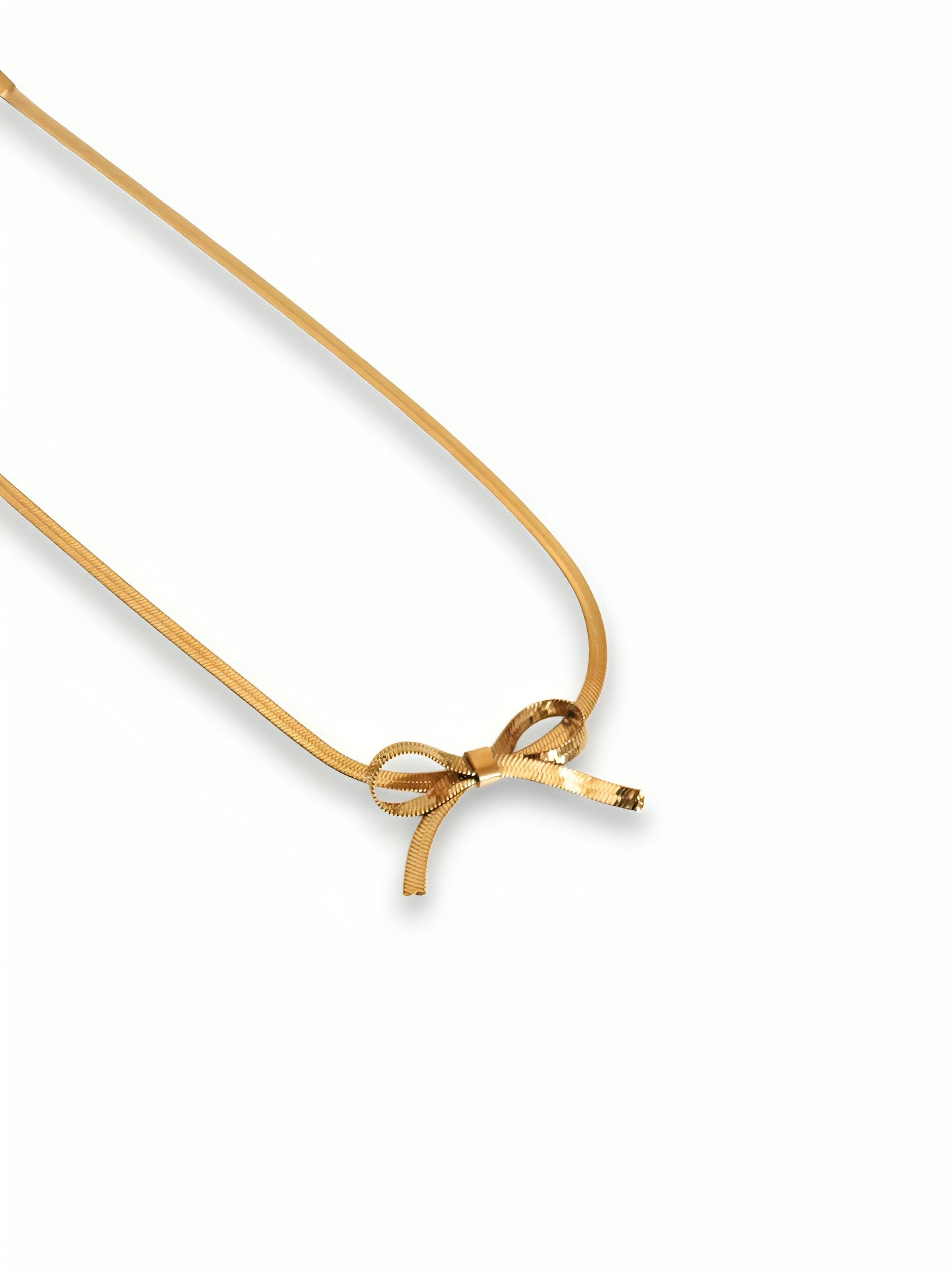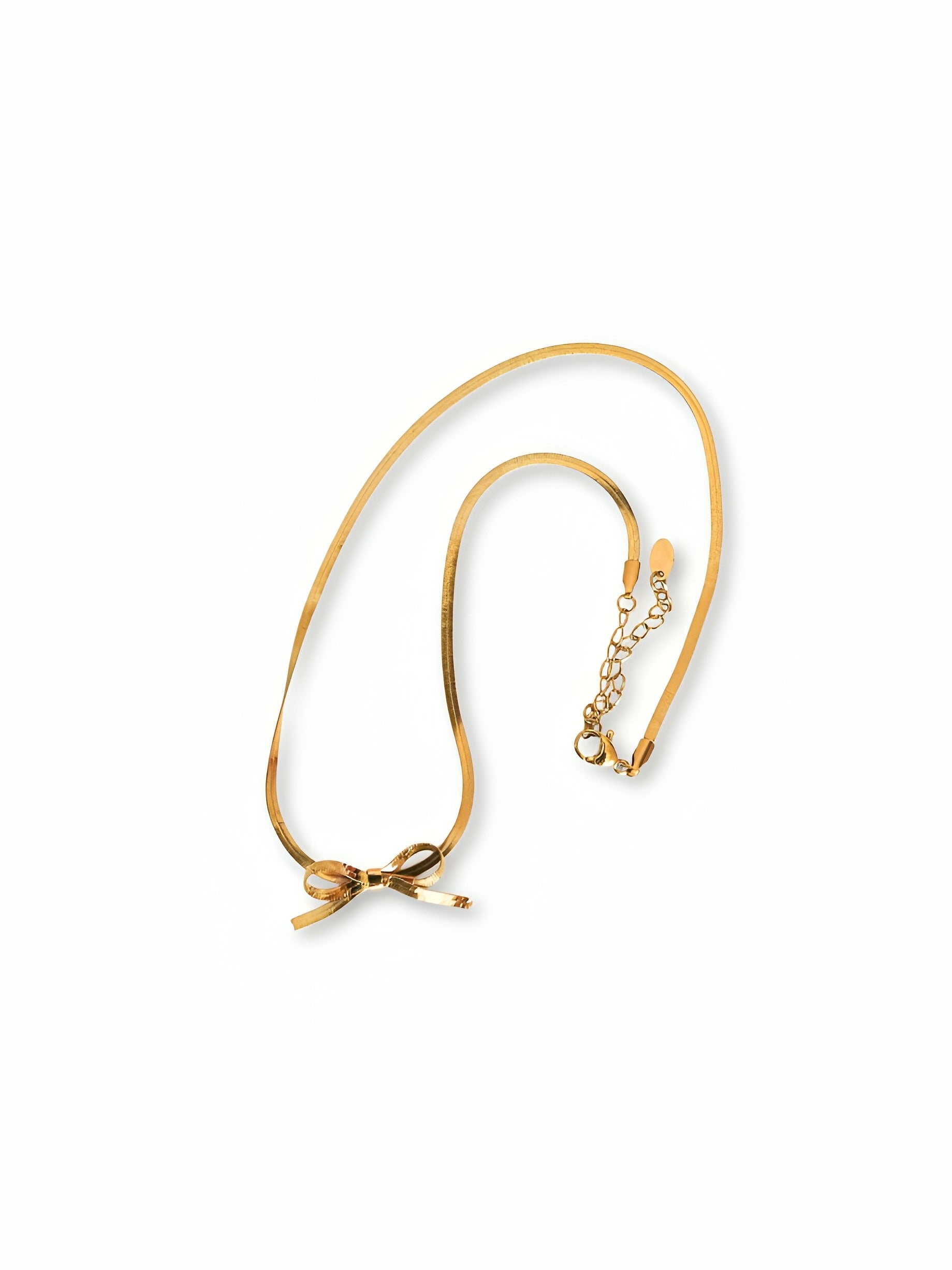 Meet The Gold Bow Choker – the sweetest addition to your jewelry collection! This necklace features an adorable bow design on a snake chain, adding a dash of charm to your neckline. Perfect for adding a playful touch to your look. Versatile and chic, it effortlessly enhances both casual and formal looks. Show off your cute side with our Gold Bow Choker!