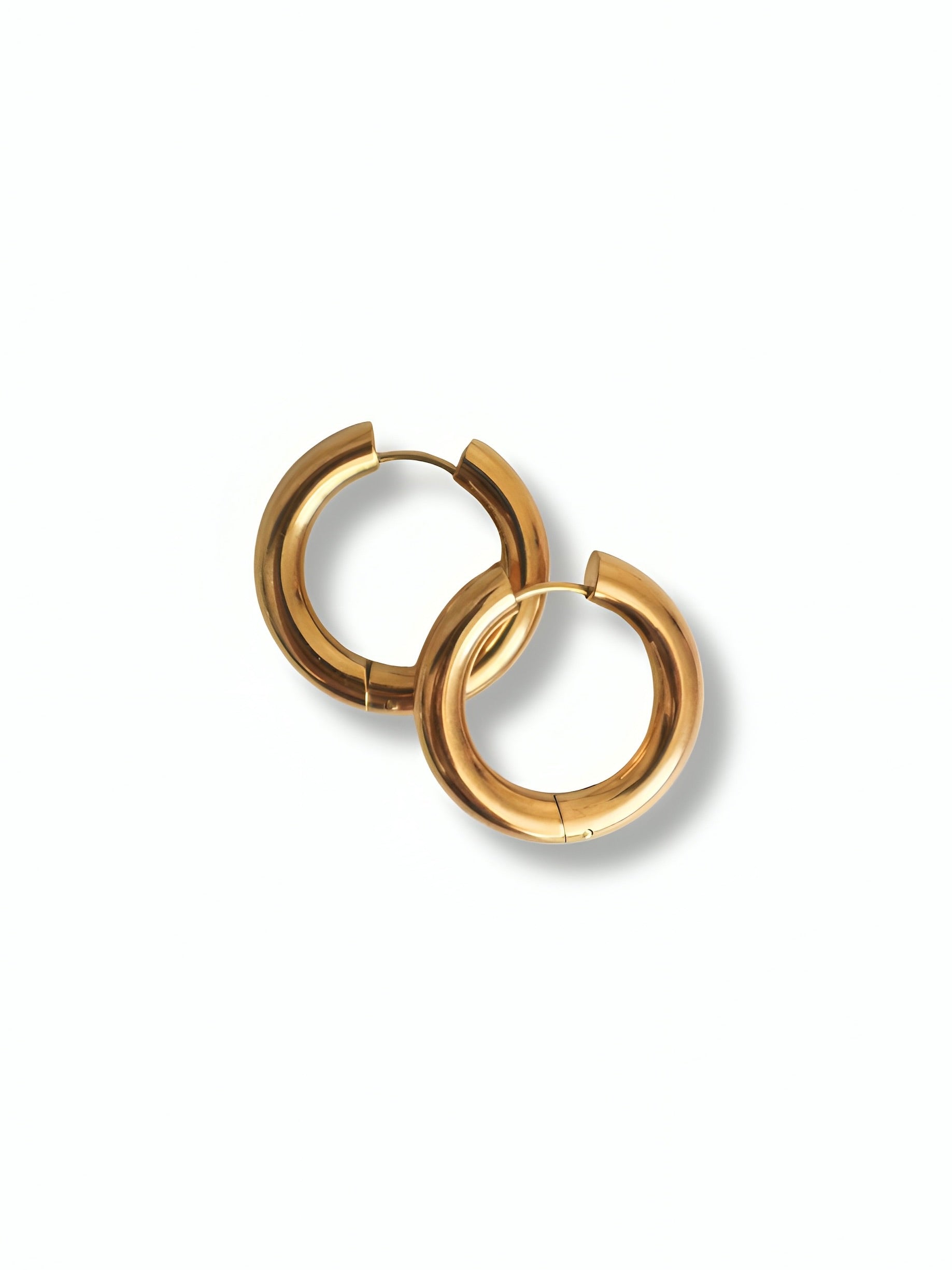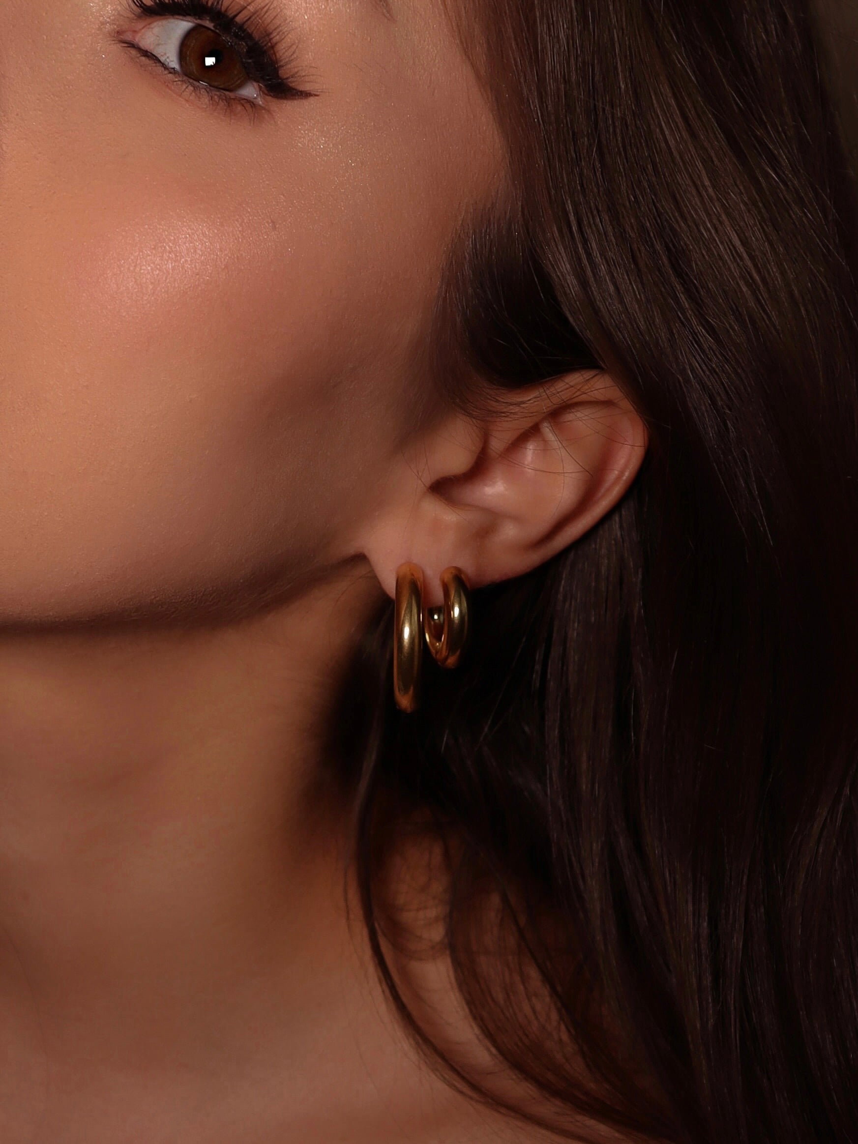 Meet our Gold Chunky Hoop Earrings: bold, beautiful, and effortlessly chic. These hoops make a statement without saying a word. Their chunky design adds a touch of modern flair to any outfit, from jeans and a tee to your favourite little black dress. Radiate confidence and style with these versatile beauties – your go-to accessory for every occasion.
