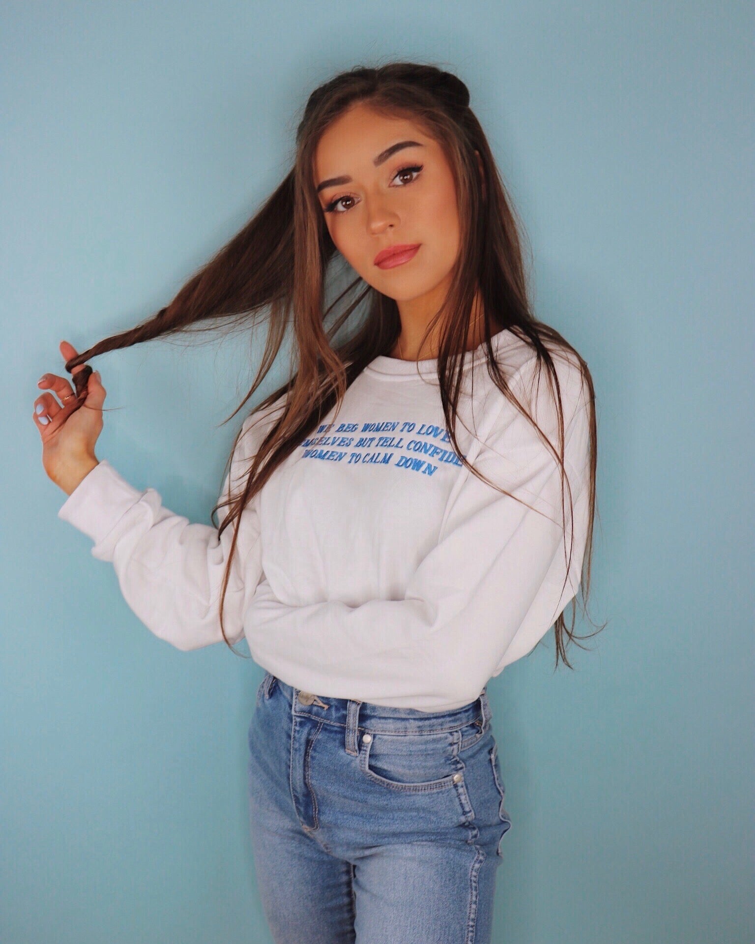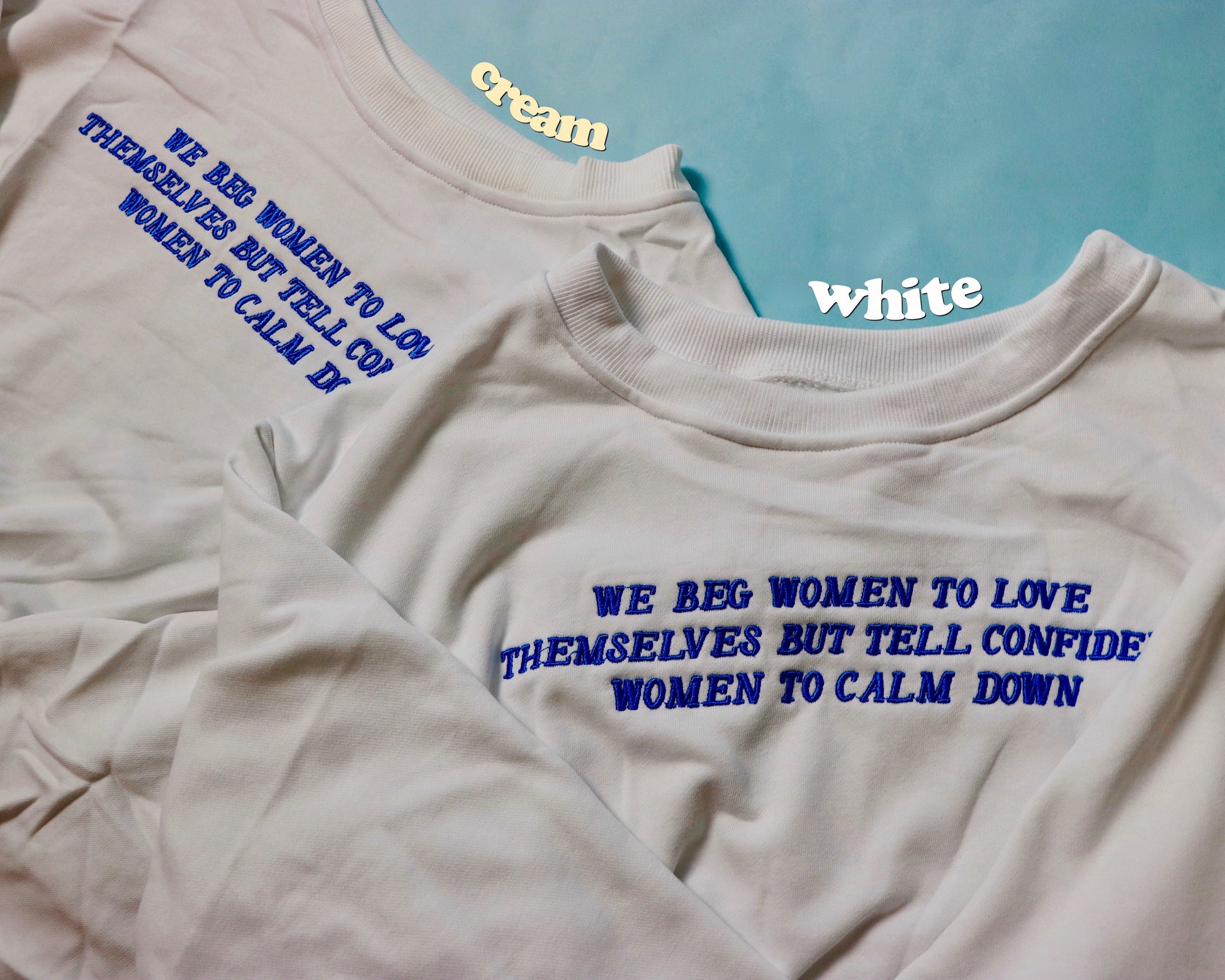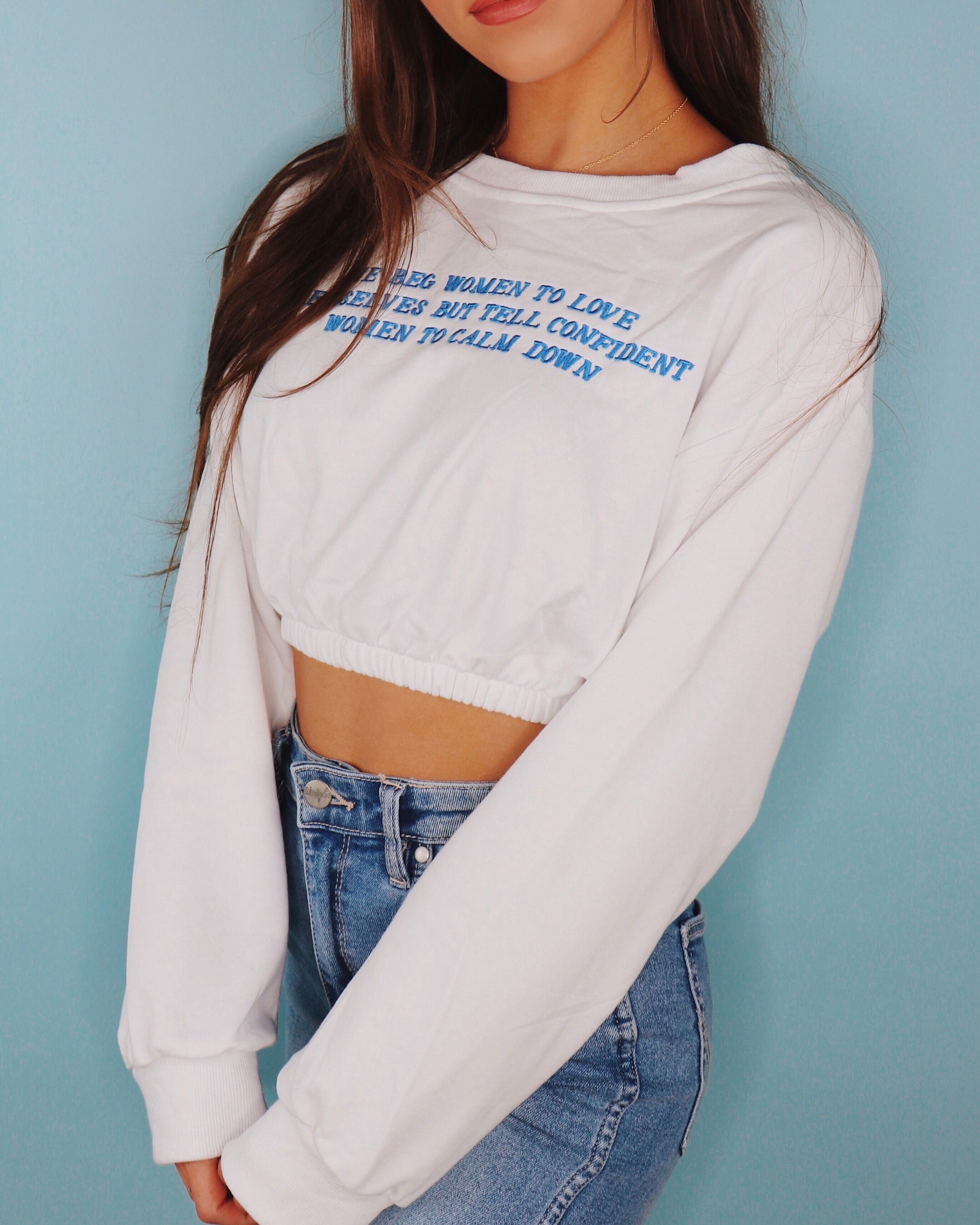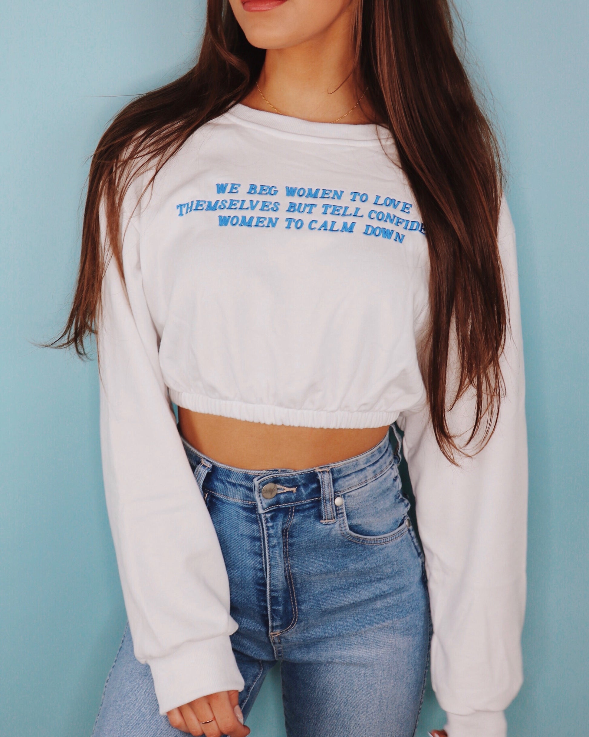 Spread an important message with the NEW "Love Yourself" cropped sweater. *Available in White with a White Collar, and White with a Cream Collar and Cream Sleeve Band.*