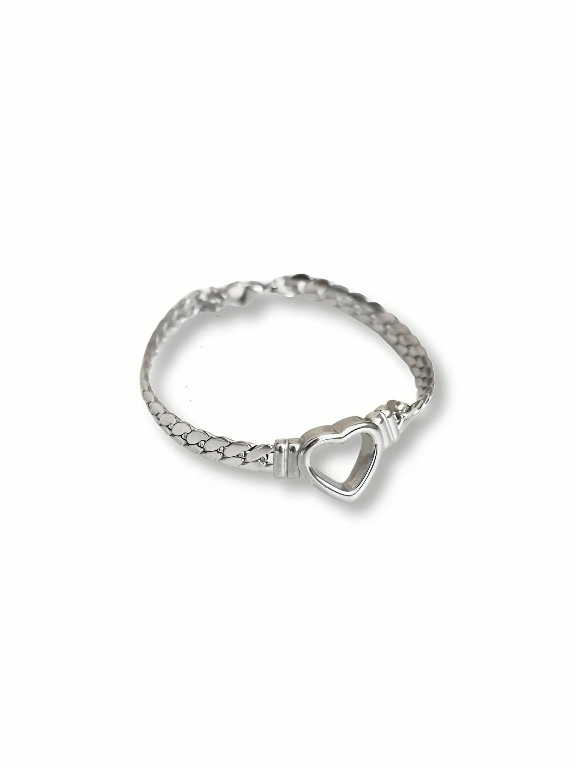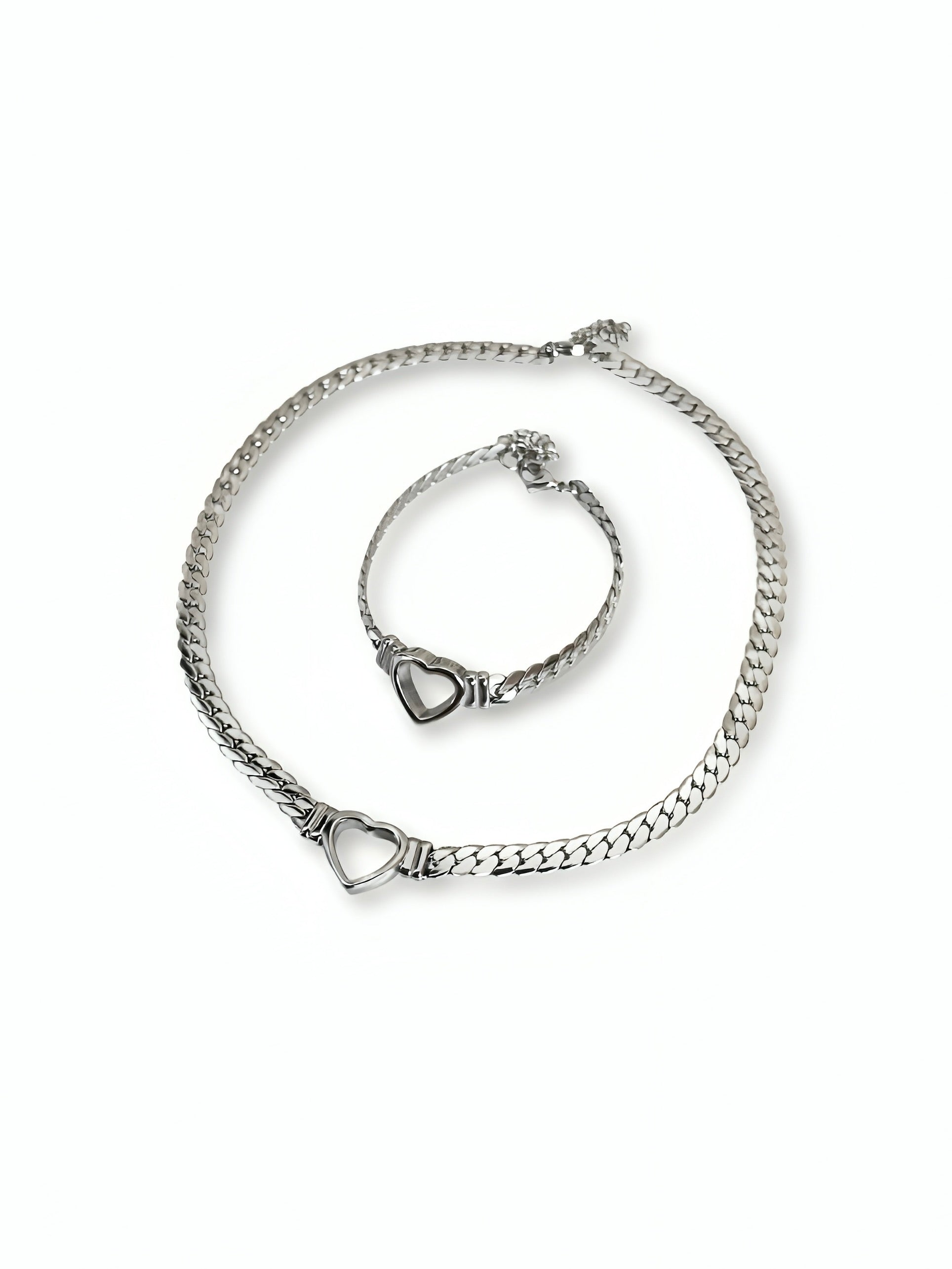 Wear your heart on your sleeve (literally) with The Silver Heart Chain Bracelet - a chic addition to your jewelry collection. Perfect for adding a hint of glamour to any outfit. Whether you wear it solo or layer it with your favourite pieces, it's sure to make a statement wherever you go. Pair it with our Silver Heart Chain Necklace.