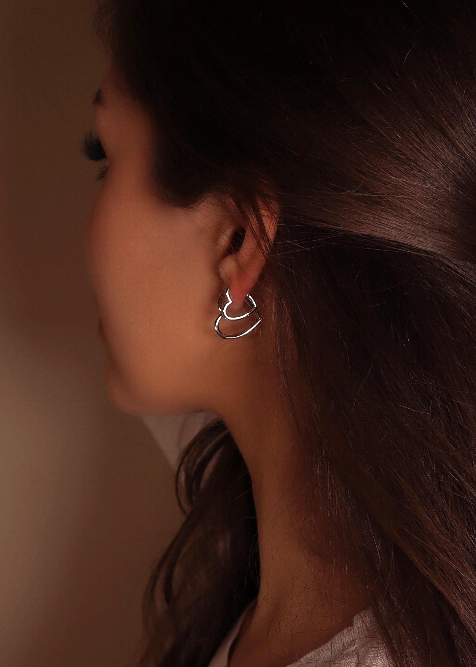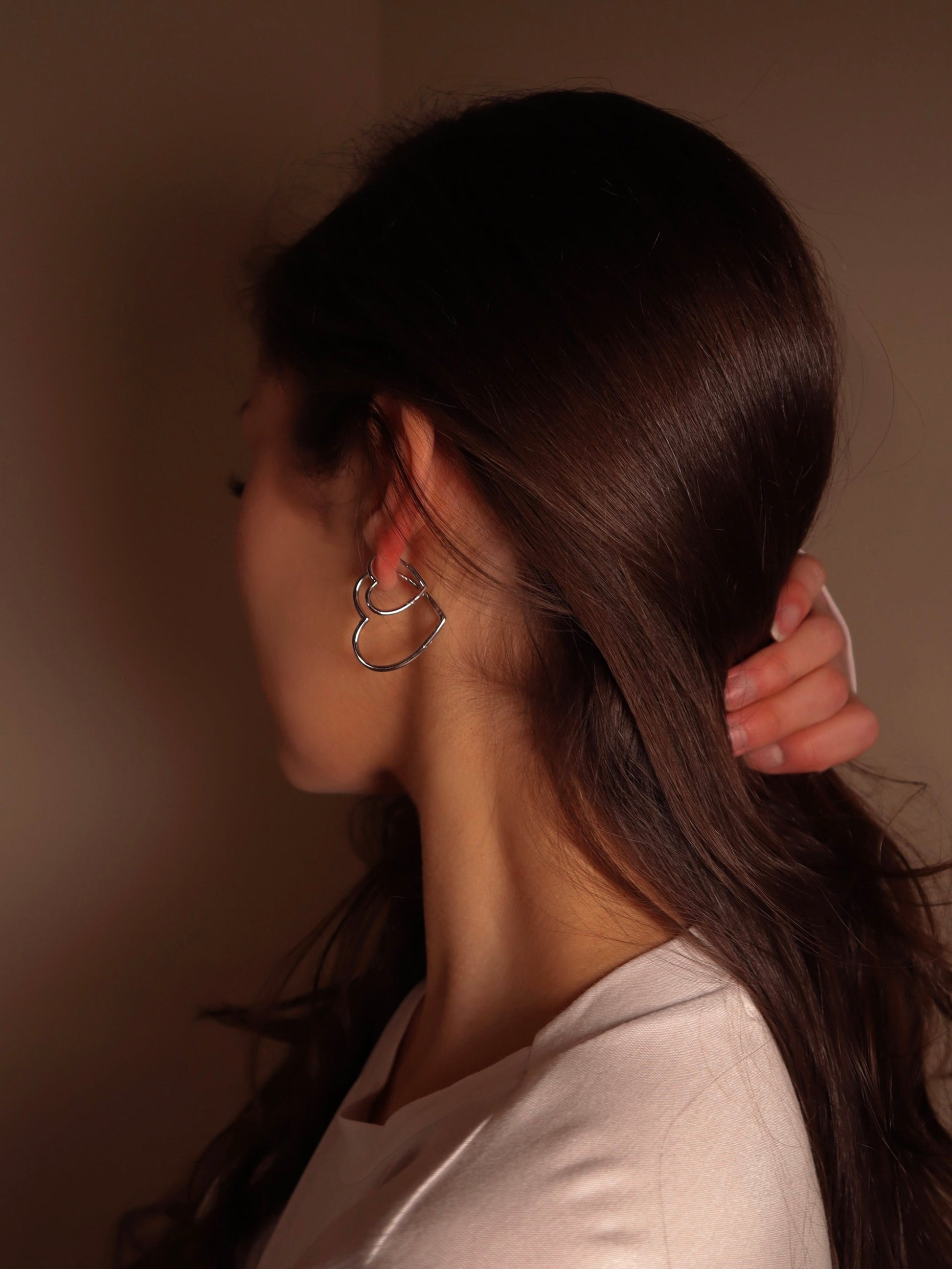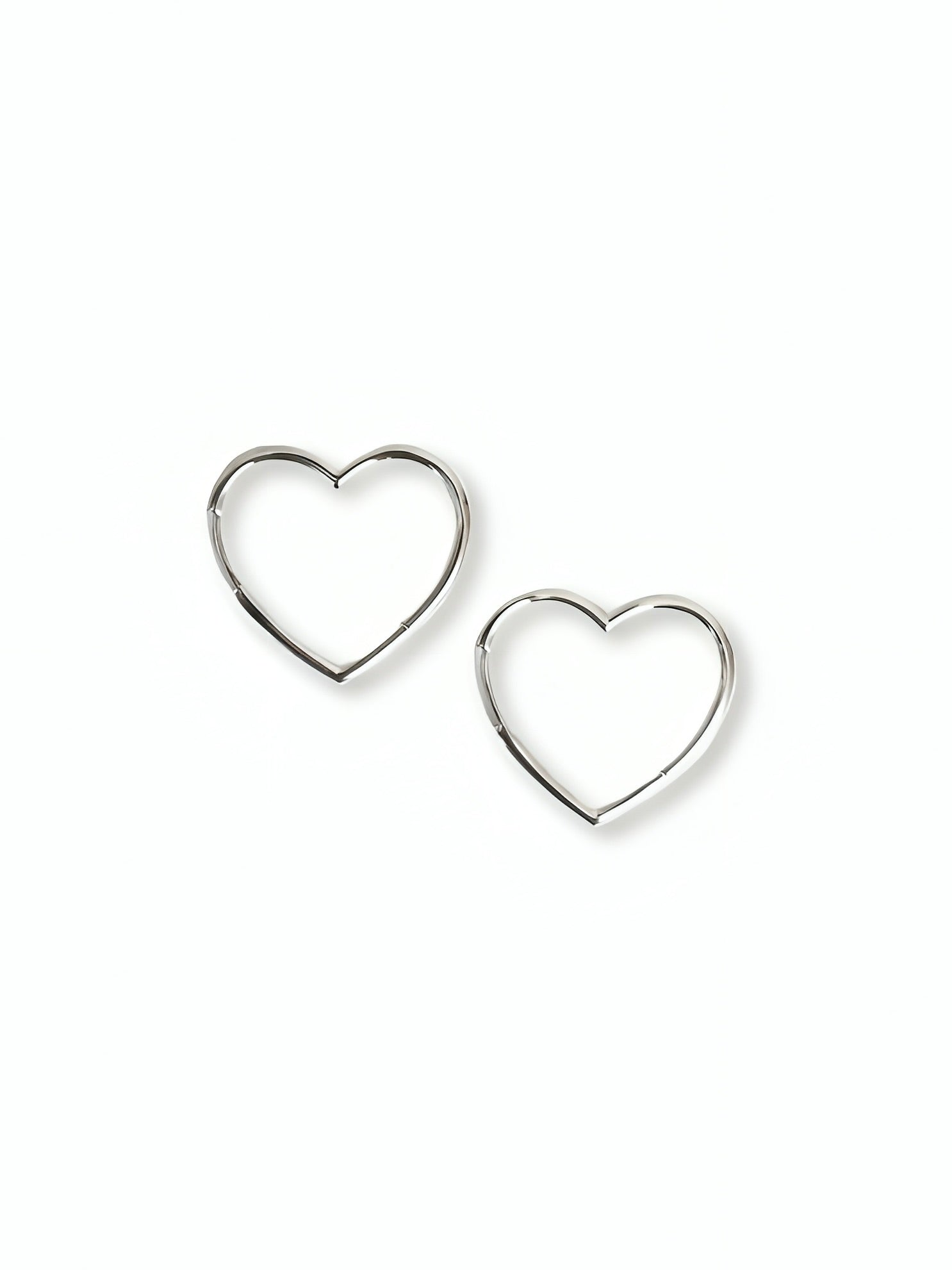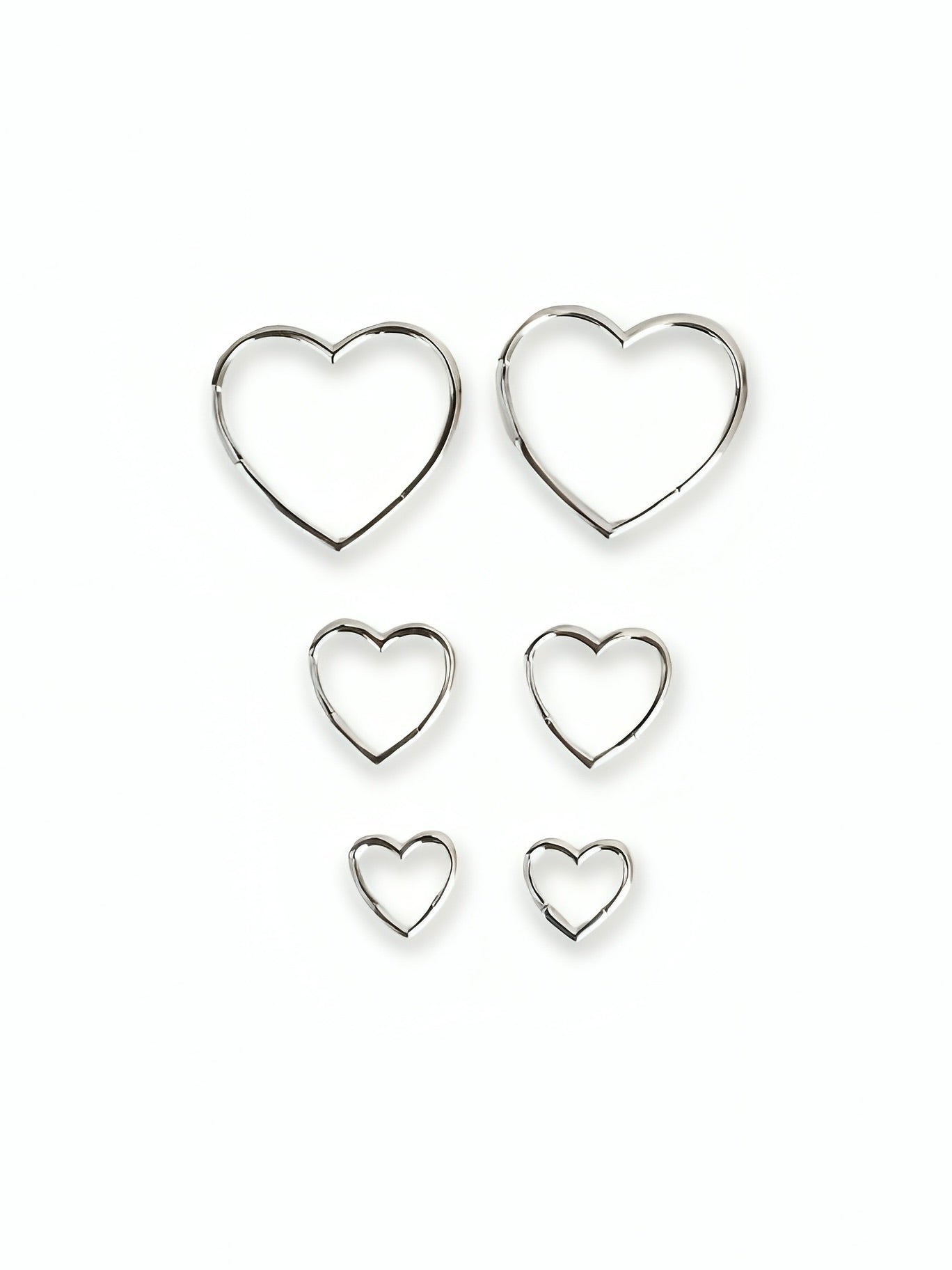 Meet our Silver Heart-Shaped Hoop Earrings – a chic and romantic addition to your jewelry collection. Available in mini, small, and regular sizes, sold separately. Find your perfect fit and add a touch of love to any look with these charming hoops.